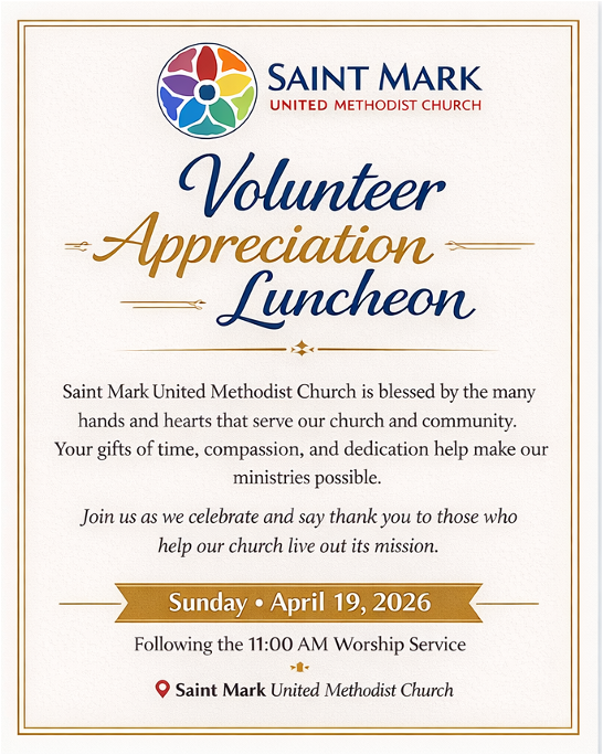 As a United Methodist Church we are proud to be a congregation with open hearts, open minds, and open doors. We strive to be a congregation that embodies God’s absolute love and hospitality, proclaiming Jesus as our savior and as our model of the ultimate embodiment of God’s love. We believe that all persons are of sacred worth and dignity as part of God’s good creation. Saint Mark United Methodist Church welcomes all persons into the full life and ministry of our congregation, regardless of race, culture, ethnicity, age, sexual orientation, gender identity, family, or socioeconomic status, physical or mental ability, or faith history.